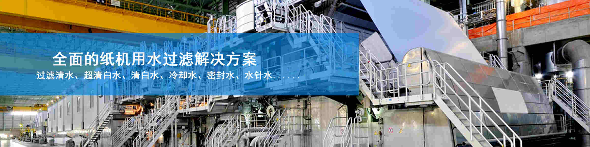 过滤各类纸机用水如原水、高低压喷淋水、水针水、热交换水、白水、密封水、轴承冷却水、冷却塔水、高低压清洗水;过滤各类造纸涂料助剂如聚合物、碳酸钙、膨润土、淀粉蒸煮液、消泡剂、施胶剂、润滑剂、抗水剂、染料、填料、颜料、乳胶等??突Щ乇ǎ悍乐古缱於氯厥赵倮盟?,节能减排,控制污染杂质进入湿部,稳定并提高纸张质量。